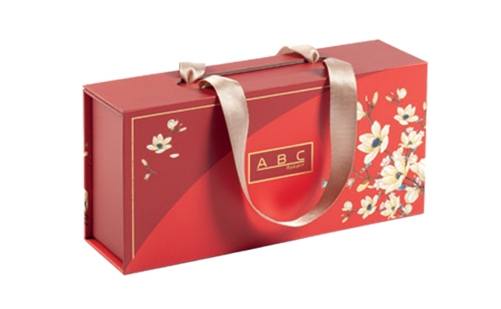 Hộp bánh trung thu ABC 2023 màu đỏ. Hộp gồm: 2 bánh trung thu ABC loại 200g hoặc 250g tự chọn, kèm dao cắt bánh (không có túi giấy đi kèm)